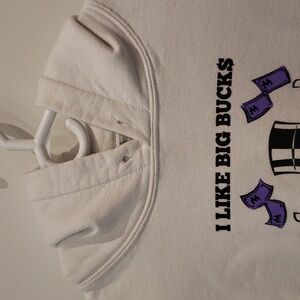 Gildan Hoodie White Monopoly 'I like Big Bucks and I cannot Lie!' Womens L