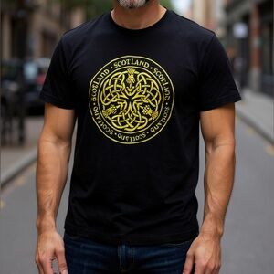 Navy blue tee with striking graphic design. Ideal for casual outings.