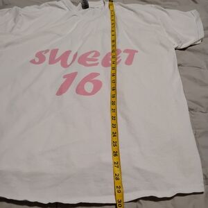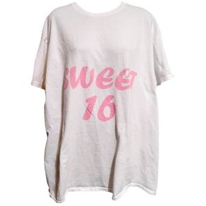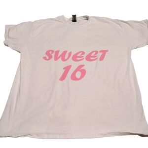 Gildan tee with 'Sweet 16' in pink. Soft and stylish.