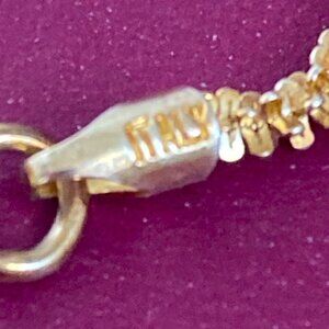 I am not sure of the exact chain style, but it works to bring out the sparkle in this pretty sterling silver chain with gold finish. Wear on its own or with a pendant. Measures 17 inches and marked 925 and Italy.