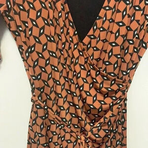 Gilli copper w black& white faux wrap dress in Jersey like fabric