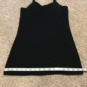 Very good preowned condition, simple, black camisole with thin adjustable shoulder straps and an inbuilt bra, made by Gilligan & O'Malley. A feminine fit for smaller ribcages. Bra and nicely integrated. Advertise as sleepwear, but you can wear it anytime anywhere.