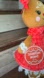 Adorable gingerbread plush wearing a red dress. Features a candy cane accessory. Perfect for holiday decor.