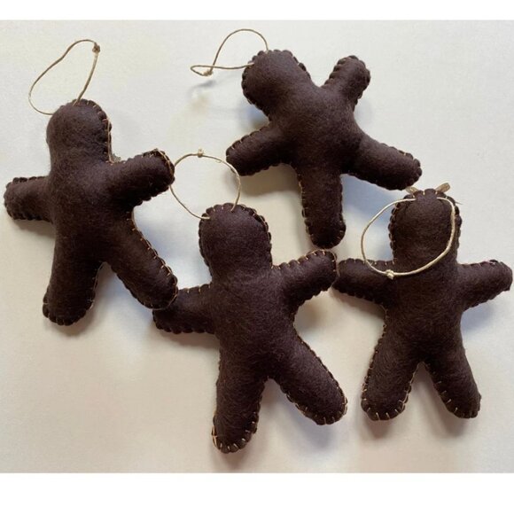 Gingerbread Man Christmas Tree Ornaments Handmade Felt Hand Stitched