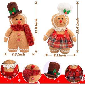 【12.6'' Gingerbread Stuffed Animal】Suit for age: 6+ years old. Adorable gingerbread christmas home decor with 12.6 inch gingerbread girls in plaid skirts and 12 inch gingerbread boys wearing a red scarf. Creative deisgn and suitable size and the internally filled PP cotton makes it incredibly comfortable to hug.