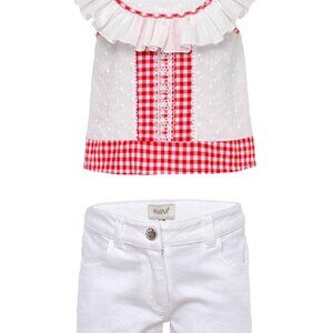Gingham Girls Shorts Outfit in White and Red