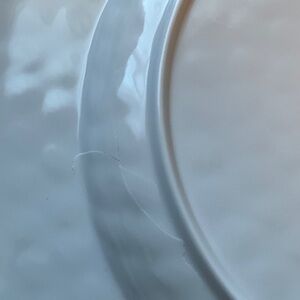 One large plate has a crack (still useable), otherwise all other pieces are new condition