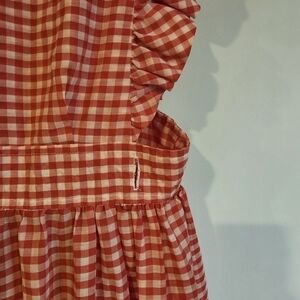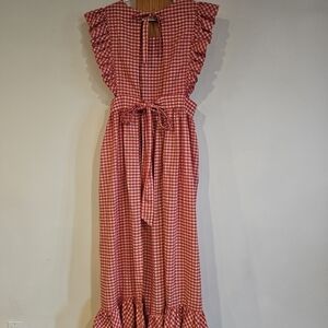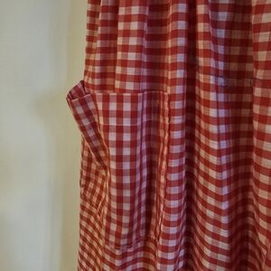 Add a touch of charm to your kitchen with this gingham ruffled apron. The vibrant red color and playful design make it a delightful addition to your kitchen linens.