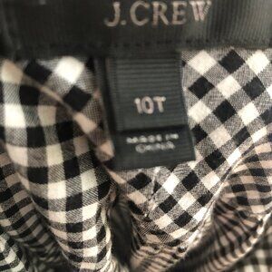 Gingham black and white pop over shirt gathered neckline by J Crew size 10 TALL