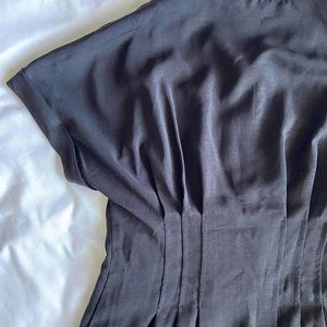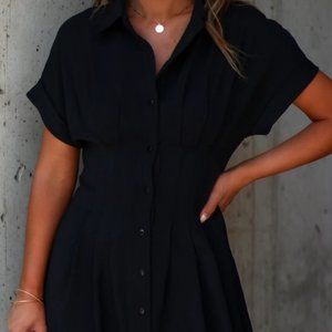 Tailored meets femme in the Ginnie Pintuck Button Down Shirt Dress in black that’s detailed with a collar and sewn sleeves.