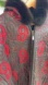 Men’s black leather jacket with red embroidery. Heavy duty zipper. Genuine for trimmed hood. This is a warm winter coat. Men’s size 3 XL. There is a slight cigarette odour to the coat so I have it airing outside.