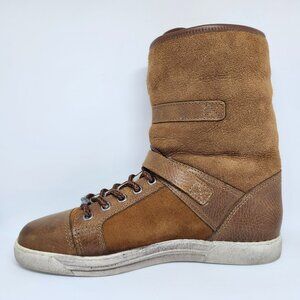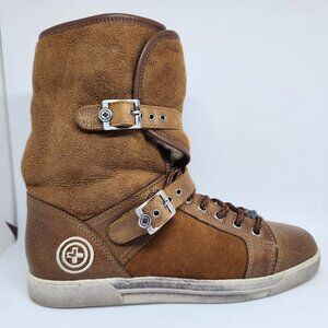 Gino-b Women's Brown Suede Boots W/Lambskin Lining , Buckles & Laces Size 7