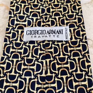 In excellent preowned condition gorgeous Giorgio Armani 100% silk tie featuring an elegant all over equestrian horse bit print.