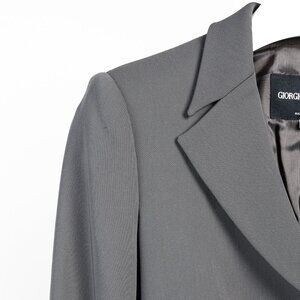 Giorgio Armani Charcoal Wool Blazer With Raised Leather Buttons
