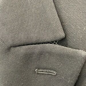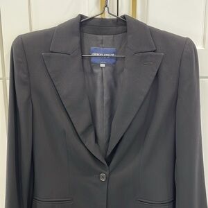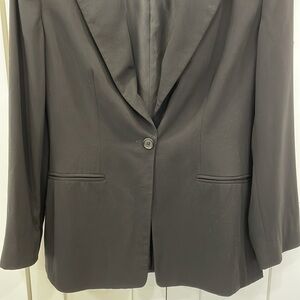 Giorgio Armani Classico black blazer with small mesh detail on collar, single button closure, built in shoulder pads. 100% wool with 100% polyester lining. Made in Italy. Size 42. Professional dry clean only. Good pre owned condition. Please see photos, reasonable offers welcome!