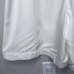 Pre owned. 2 very faint dot marks on hem of shorts.