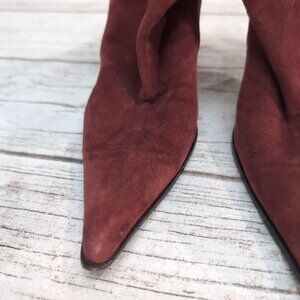 Giorgio Armani Suede Stiletto Ankle Boots Burgundy Pointed Toe Women US 6.5–7