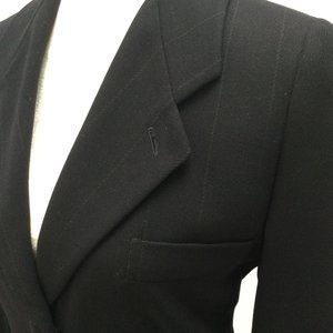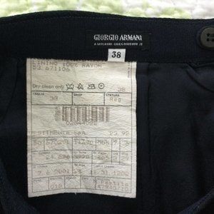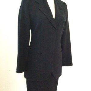 This is a ladies jacket and skirt by Giorgio Armani, timeless classic style in navy blue pure new wool and fully lined with rayon. Vintage European size 38 which is equivalent to today's US size 0P. Jacket length 28"; Shoulder width 15"; Jacket waist 30"; Sleeve length 22.5"; Skirt waist 25"; Skirt length 17.5". Perfect for important business meetings, dress down with a pair of jeans or a chic top - the endless choices are all yours! Bought new for $1500+ in the beginning of my banking career and kept in great condition.