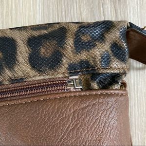 Giorgio Fiorelli brown double trap shoulder bag . Leopard print upper with red lining inside