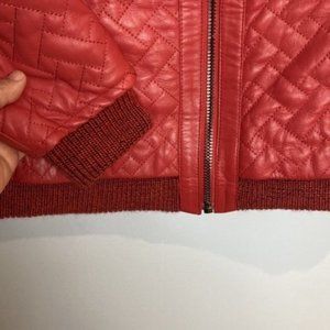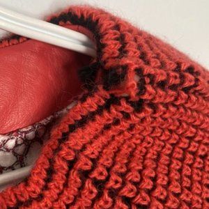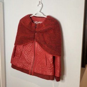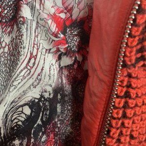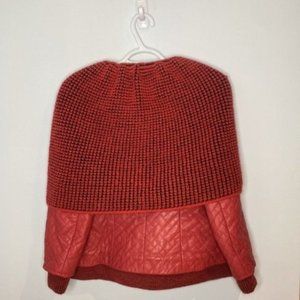 Giorgio Rotti Women Red Knit Scarf Collar Soft Leather Lined Jacket Size Large