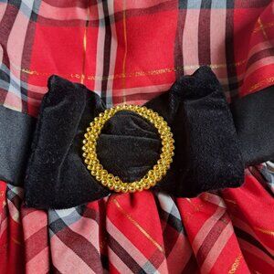 Girl Holiday Christmas Red and black with velvet bow plaid fancy dress layered taffeta