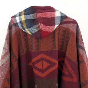 Girl Krazy Red and Blue Geometric Accent Poncho
