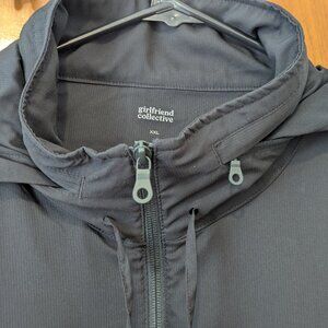 Girlfriend Collective Hummingbird Half-Zip Windbreaker in size XXL. Very light half-zip jacket with a hideable hood, zip pockets and elasticated cuffs, there is also a drawstring at the bottom. Hits at the top of the hips (a little cropped). No signs of wear. 100% Recycled Plastic Bottles (RPET).