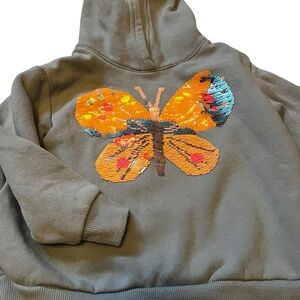 • H&M hoodie in soft blue with colorful sequin butterfly (4-6Y)
