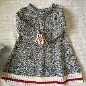 Roots Salt & Pepper Flare Sweater Cabin Dress- 60%- Cotton- 28%- Recycled Polyester- 12%- Acrylic- Sz- 2T- Good pre-owned condition- very little wear
