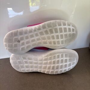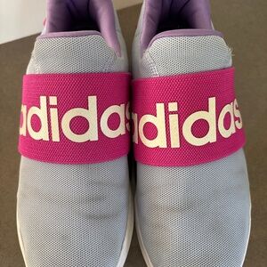 Girls Adidas slip on runners in size 1. Pink/periwinkle/purple. Only used as indoor shoes so in great condition.
