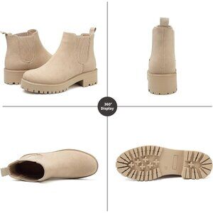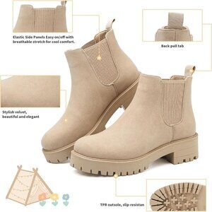 Girls Apricot Pull-On Fall Chelsea Boots Water-Resistant PU Ankle Heel Boots