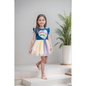🆕Girls Blue Polyester Unicorn Tulle Tutu Dress Princess Casual 1-8T