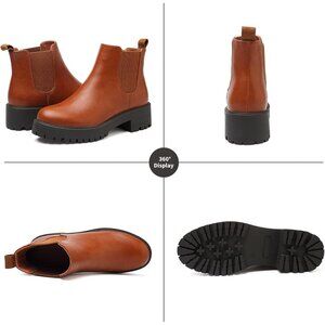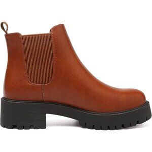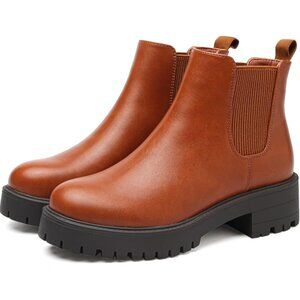 Girls Brown Pull-On Fall Chelsea Boots Water-Resistant PU Ankle Heel Boots