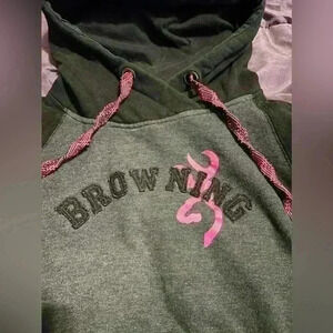 Super cute girls Browning hoodie with pink accents black sleeves and hood and grey body size medium. Make an offer