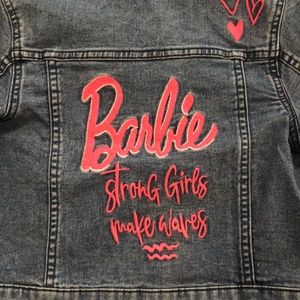 This is a bundle of 4 girls clothing items. Barbie Jean jacket was only worn once and in excellent condition. Size 4. Well made & originally $65. Also includes size 5, (but runs small) Cat & Jack long sleeve, size 4/5 rainbow sweatshirt (also runs small), and Grayson mini size 4 puff sleeve sweatshirt. No stains & all in good condition.