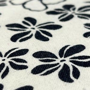 - Floral pattern with very dark blue trim and embellishments