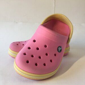 Girls Crocs Pink and Yellow Clogs Size J 1 Kids Shoes Original