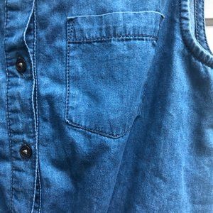 Size 11 dress. Light denim upper and unicorn pattern skirt. In excellent condition.