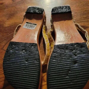 wooden Sandals for girls painted soles Sparkly toe straps grips on soles size 4 with 8" sole