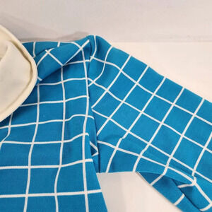 Girls Dress Blue Mod Check Pattern Black & White Collar 1970s 1960s Size 4-5 Vtg