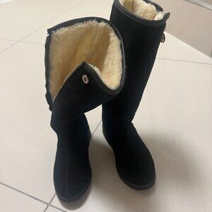 Keep your little one cozy and stylish this winter with these chic black faux suede mid-calf boots. Designed with soft fleece lining for extra warmth and comfort, these boots feature a smooth side zipper with gold detail for easy wear and a snug fit. Perfect for chilly days, school outfits, or weekend outings.