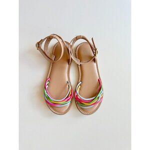 Girls' GAP Tan Faux Leather Rainbow Strappy Ankle Strap Sandals, Size 28/11