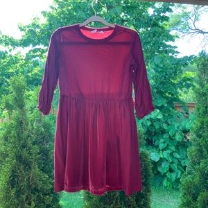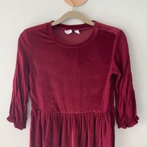 Girls GAP burgundy velvet dress, sleeves are not velvet. Size medium (8). Made from 90% polyester and 10% spandex