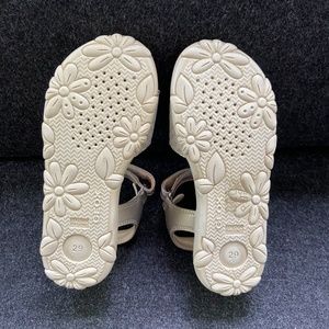 Never worn! Fully adjustable - velcro straps around ankle and foot. Tan with tiny gold flowers.