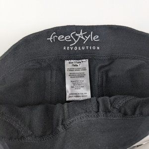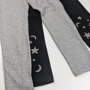 Features classic grey leggings, black with silver stickers on both legs, back pockets on both sides