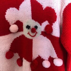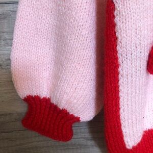 Unique and adorable hand knit sweater with pompons.
