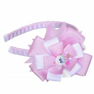 Girl's Headband Flower Design Baby Pink & White with Handmade Felt Unicorn