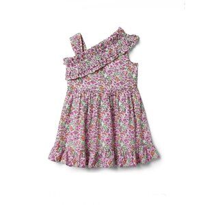 Girls' JANIE AND JACK Pink Floral Cotton Poplin Ruffle Asymmetric Dress, Size 5Y