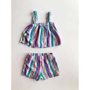 Girls' JOE FRESH Multi Rainbow Striped Viscose Crepe Tank Shorts Set, Size 4