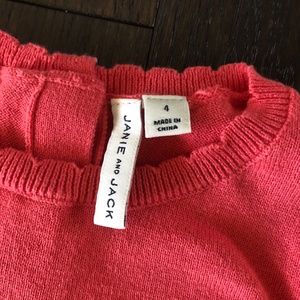 Girl’s Janie & Jack puff sleeve cropped sweater. Beautiful coral color. Size 4. Gently worn once and in excellent condition. Embroidered flowers.
